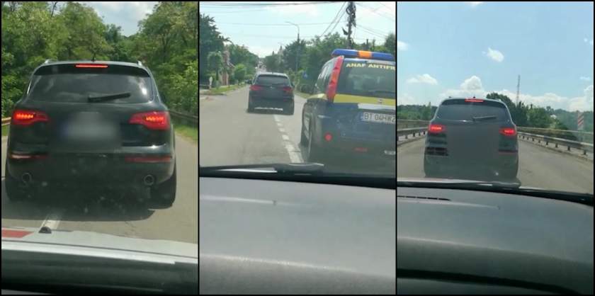 Scenariu de film pe străzile din România. Maşini ale poliţiei şi ANAF au fost blocate intenţionat kilometri întregi de un Audi pentru ca oamenii legii să nu poată ajunge la contrabaniştii de ţigări. S-a întâmplat pe E85, de la Siret spre Suceava.