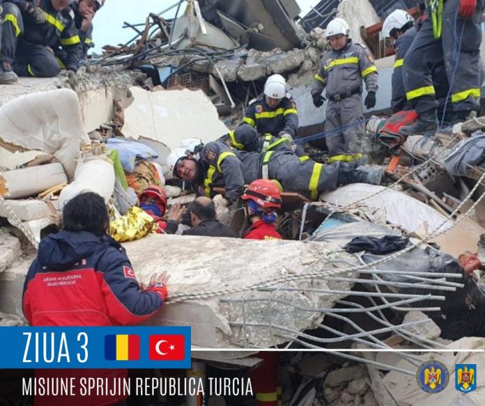 Reamintim faptul că la acest moment, în Turcia sunt prezente 2 echipe de sprijin din România, formate din personal specializat de căutare-salvare RO-USAR, medici și asistenți SMURD, personal cu echipe canine din cadrul Clubul Câinilor Utilitari, Câini de Salvare Transilvania, Câini de Salvare Gugulania, care se află în permanentă legătură cu autoritățile turce, reprezentanții AFAD fiind cei direct responsabili în a desemna zona de acțiune și intervenție a echipelor internaționale venite în sprijin.