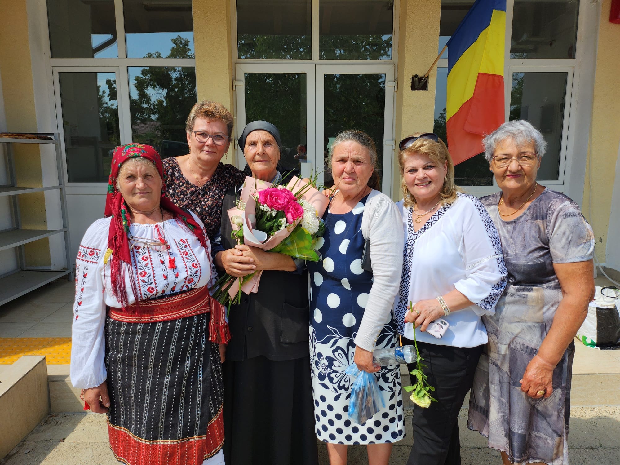 Foarte emoționată a fost la Memorialul Ulmi-Poleni unde s-a închinat la Crucea Eroilor satului și și-a amintit, cu mândrie, de toți foștii elevi care au făcut studii superioare expuși pe un panou la memorial.