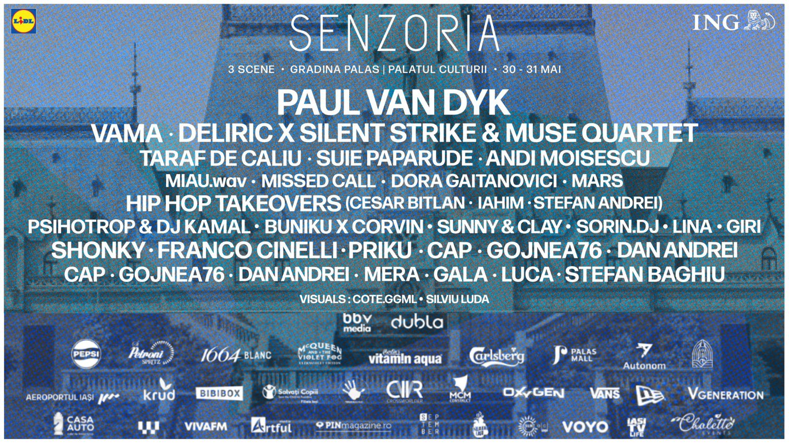 SENZORIA FESTIVAL, evenimentul care îți oferă o experiență vizuală și auditivă de neuitat, revine la Palas cu proiecții 3D, muzică bună și surprize pentru toți. 3 scene distincte, spectacol de lumini și sunet, vibe-ul artiștilor Paul van Dyk, Vama, Deliric X Silent Strike & Muse Quartet, dar și activități și multă voie bună pentru cei mici în cadrul Family Fest.