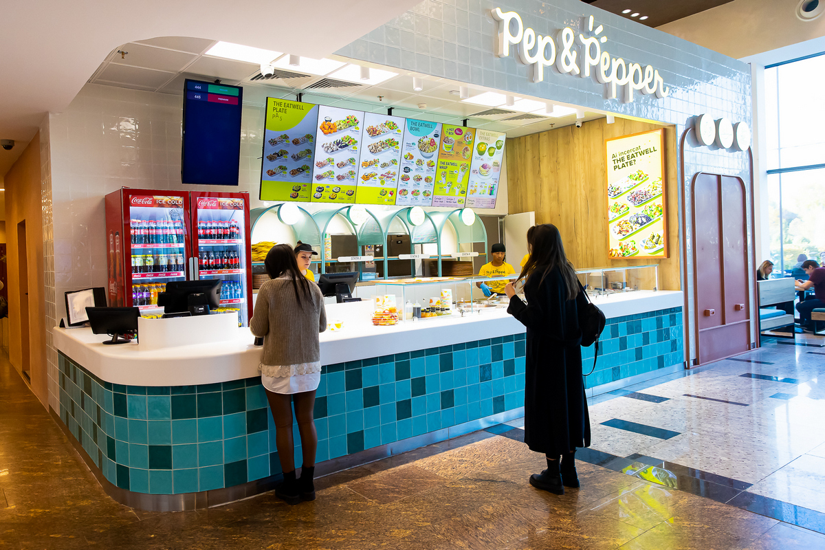 Pep & Pepper propune o masă echilibrată și gustoasă, gândită special pentru persoanele care adoptă un stil de viață sănătos și activ. Ingredientele proaspete și hrănitoare, atenția la procesul de preparare, dar și rețetele originale, precum marinarea cărnii timp de 12 ore, fac din meniurile Pep & Pepper alegerea perfectă atunci când vrei să te bucuri de o masă delicioasă și sănătoasă. Noua locație se află în food court, unde a fost amenajată și o zonă specială pentru cei care vor să se bucure de experiența Pep & Pepper.