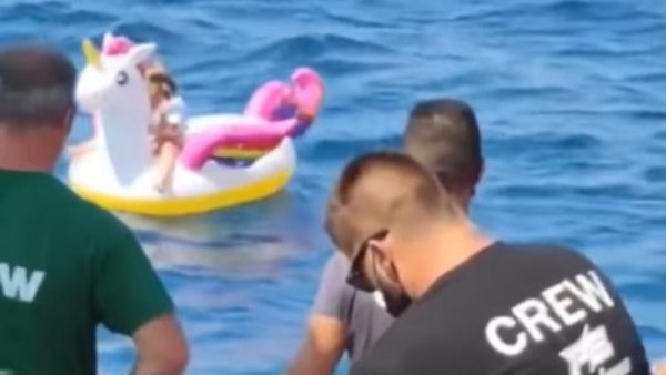 O fetiță în vârstă de câțiva ani a fost observată de echipajul unei nave, în timp ce plutea în derivă, pe un unicorn gonflabil, la foarte mare depărtare de țărm.