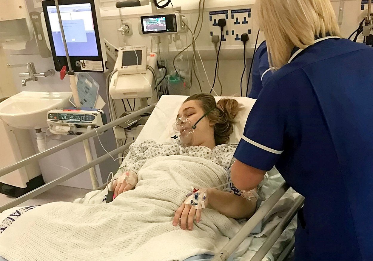 COLLECT - Mum Ebony Stevenson, 18, in hospital. See SWNS story SWSYsurprise. A teenager went to bed with a headache, fell into a coma and woke up four days later - after unknowingly giving birth to a surprise baby. Ebony Stevenson, 18, had no idea she was pregnant, and after going to bed feeling unwell on December 2, 2018, she was rushed to hospital and placed in an induced coma before waking up on December 6 having had a baby girl. The college student - who studies Sports Physiotherapy - hadn't developed a bump, experienced no morning sickness and had not missed a period. She had no idea she was expecting as her unborn baby was hidden in one of two uteruses, in a condition called uterus didelphys. The condition, thought to affect one in 3,000 women, means those affected are born with two uteruses. In Ebony’s case, only one of them had a fallopian tube to carry an egg, while the other had none – meaning her chances of conception should have been slim. After suffering a series of seizures on December 2, Ebony was rushed to Royal Oldham Hospital, Greater Manchester, and placed in an induced coma. Medics performed tests and discovered Ebony had suffered from preeclampsia which had caused the seizures, and she was pregnant. They told her mum immediately and said that the baby needed to be delivered right away. She underwent an emergency caesarean on Monday 3 December and gave birth to a baby girl at 1.32am who weighed 7lbs 10ozs - just over three hours after the first fit. Ebony woke on December 6 to discover she had given birth and was suddenly a mum., Image: 414309231, License: Rights-managed, Restrictions: This image hereby disclosed to your organisation is so disclosed on the condition that your organisation will take all steps necessary to ensure that any identifiable personal data is processed in full compliance with the Data Protection Act 2018