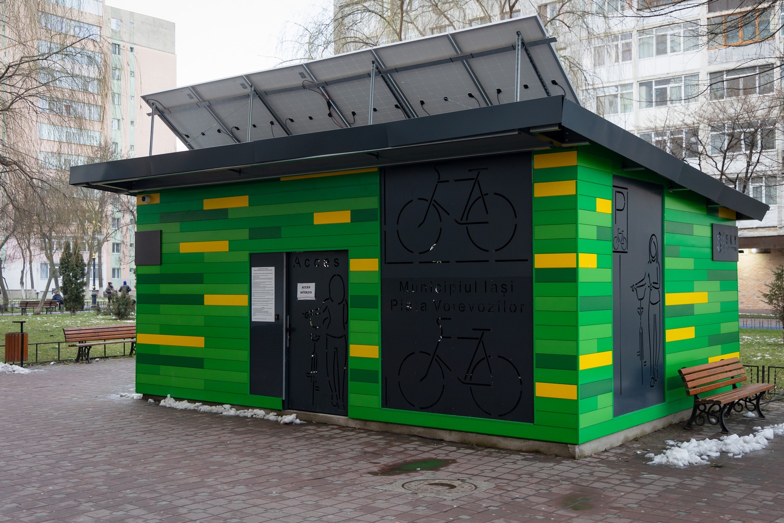 Primăria Municipiului Iași a finalizat montarea și pregătește darea în folosință a containerului securizat cu 50 de rastele pentru biciclete amplasat pe esplanada Minerva – Piața Voievozilor din cartierul Alexandru cel Bun.