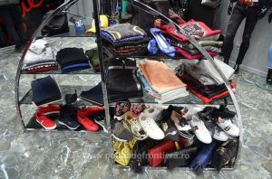 În urma percheziţiilor efectuate la punctele de lucru ale unor societăţi comerciale, au fost descoperite 173 de bunuri (articole de îmbrăcăminte, încălţăminte şi accesorii), toate având inscripţionate însemne ori logouri ale unor mărci protejate.