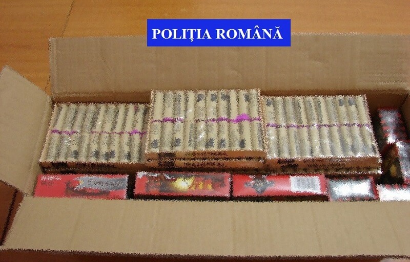 În urma verificărilor efectuate de polițiști, în autoturism barbatului au fost identificate 44.800 de petarde.