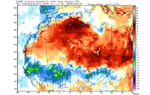Noile date în discuţie au fost înregistrate joi, 5 iulie, în Algeria şi potrivit unor experţi ar putea fi admise ca fiind cea mai înaltă temperatură înregistrată cu instrumente moderne în Africa. Recordul posibil ar putea fi de 51,3°C în oraşului Ouargla, în zona algeriană din deşertul Sahara.