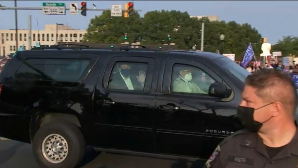 Președintele Donald Trump, a ieșit duminică pentru scurt timp din spitalul Walter Reed unde este internat, dorind să-și salute susținătorii strânși în fața instituției medicale de la bordul unui SUV de culoare neagră.