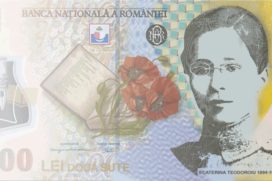 Banca Naţională a României va pune în circulaţie, de la 1 decembrie 2021, o bancnotă cu valoarea nominală de 20 lei, fiind prima bancnotă cu putere circulatorie pe care este prezentă o personalitate feminină: Ecaterina Teodoroiu.
