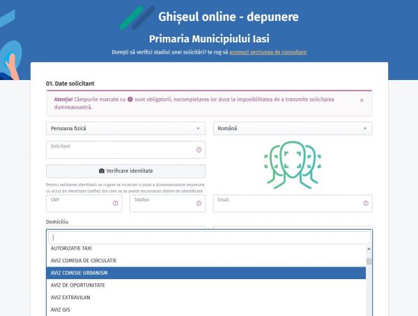 Consultarea stării unei solicitări se poate face și de pe site-ul Primăriei Municipiului Iași, accesând secțiunea Ghișeul online – Consultare, utilizând codul unic atribuit solicitării dumneavoastră.