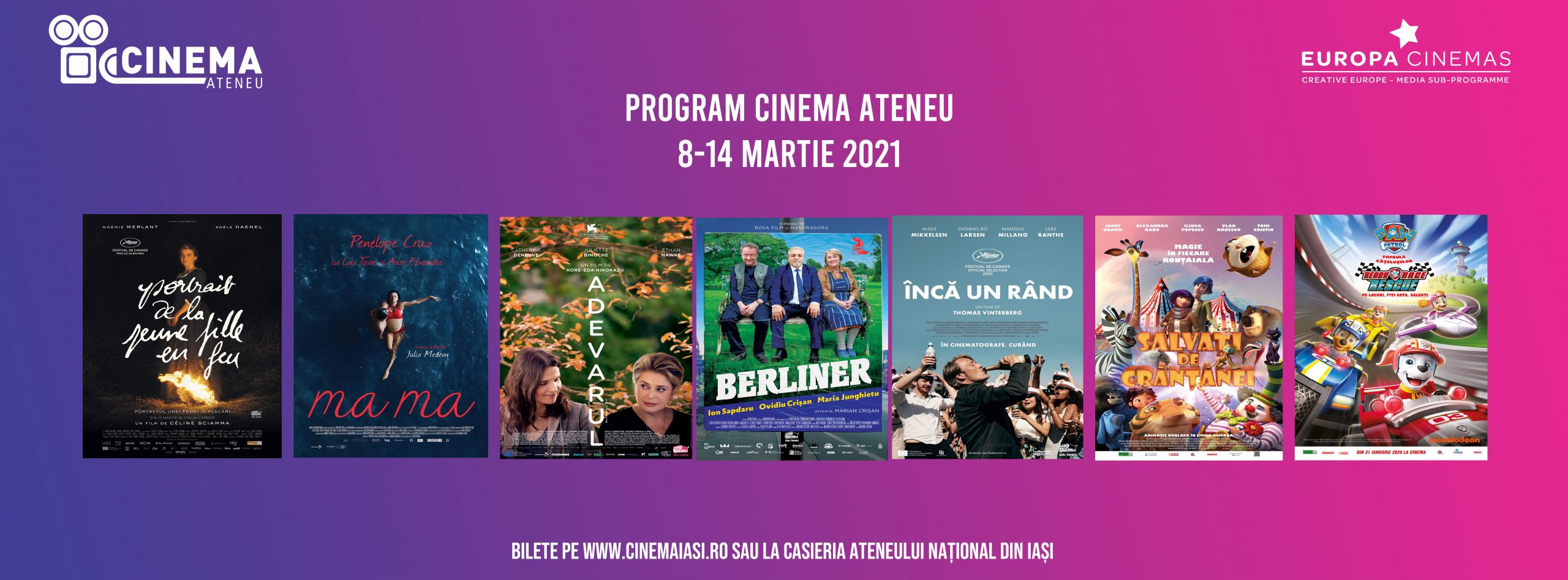 Biletele pot fi achiziționate de pe www.cinemaiasi.ro sau de la casieria Ateneului Național din Iași. Proiecțiile sunt organizate cu respectarea măsurilor de siguranță și distanțare.