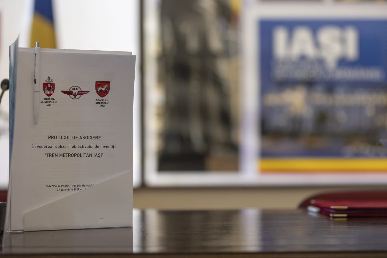 Președintele Consiliului Județean, Costel Alexe, a semnat astăzi protocolul de asociere în vederea realizării obiectivului de investiții “Tren Metropolitan” alături de UAT Municipiul Iași prin Consiliul Local Iași, Asociația Metropolitană de Transport Public Iași, UAT Comuna Lețcani, UAT Comuna Holboca, UAT Comuna Miroslava, UAT Comuna Ciurea, UAT Comuna Tomești și Compania Națională de Căi Ferate “CFR“ SA.