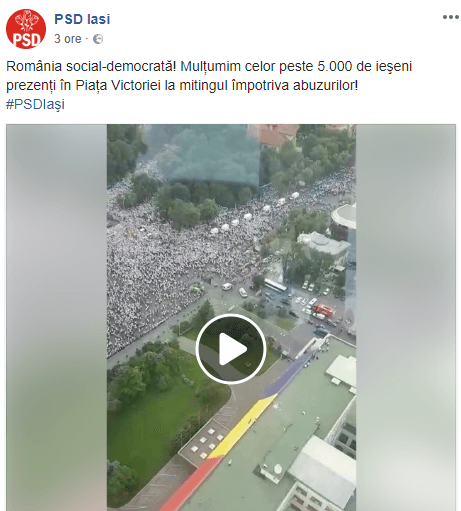 Sâmbătă, la București, în jur de 150 de mii de membri și simpatizanți ai partidului de guvernământ, Partidul Social Democrat, au participat la un miting organizat de partid , pentru a-și afișa popularitatea dar și pentru a protestat față de ceea ce consideră a fi „abuzurile din justiție”.