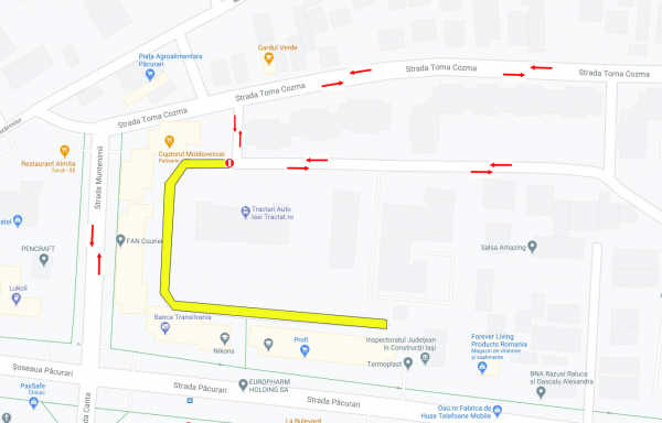 În perioada 15 – 18 octombrie, între orele 8.00 și 18.00, echipele Citadin SA vor face reparații, dacă vremea o va permite, pe aleea de acces dintre strada Toma Cozma, nr. 111 și strada Păcurari, nr. 152.