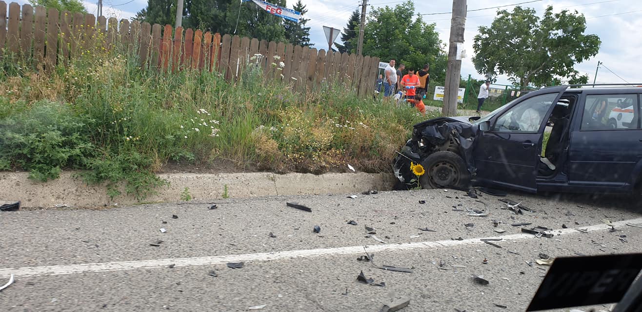Două autoturisme s-au lovit frontal, în urma impactului rezultând 7 victime, dintre care 5 adulți și doi copii.