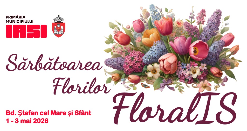Sărbătoarea Florilor – FloralIS, un eveniment emblematic organizat de Primăria Municipiului Iași și dedicat celebrării frumuseții naturii și revitalizării peisajului urban prin artă florală, revine între 1 și 3 mai 2026 în zona pietonală a bulevardului Ștefan cel Mare și Sfânt.