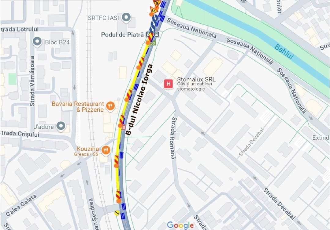 În perioada 09 – 15 septembrie, între orele 22:00 – 06:00, este restricţionată circulaţia pe bulevardul Nicolae Iorga – tronsonul cuprins între intersecţia cu Şoseaua Națională si intersectia cu Pasajul Galata ( primele două benzi de la bordură vor fi închise, circulaţia putându-se desfăşura pe banda a treia – linia de tramvai ).