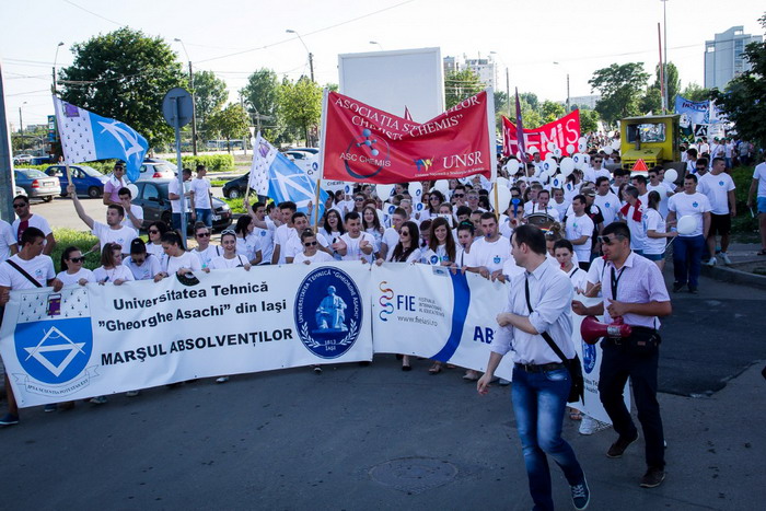 Totodată, între orele 16.00 – 17.30, în aceeaşi zi, pe patru trasee din oraş vor mărşălui absolvenţii: dinspre universităţile din Copou, Tudor şi Independenţei cu destinaţia finală Palatul Culturii. După marşul absolvenţilor, pe esplanada din faţa Palatului va avea loc un concert susţinut de Dan Bittman, Cristi Minculescu, Ştefan Boldijar, Adrian Despot, Călin Goia, Mircea Baniciu, Flavius Buzilă, Paul Ciuci şi orchestra simfonică Bigg Dimm a’Band.