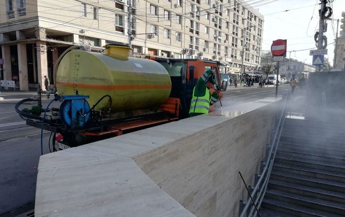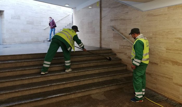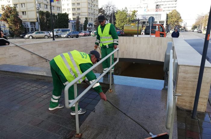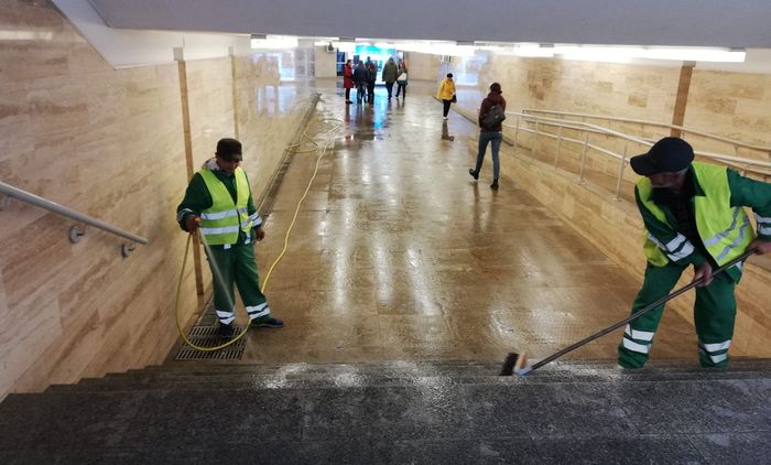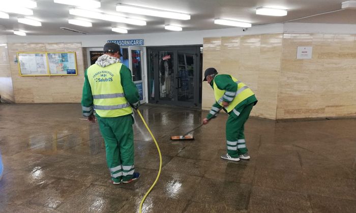 Salubris Iași a alocat resurse importante pentru salubrizarea și igienizarea pasajului subteran din Piața Unirii. Echipe ale societății au fost surprinse la lucru în această dimineață.