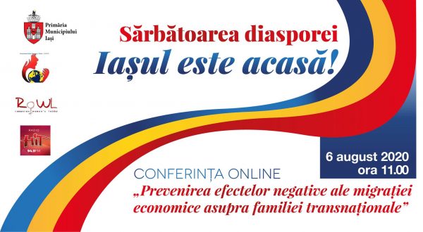 În cadrul programului „Sărbătoarea Diasporei – Iașul este Acasă!”, Biroul Diaspora al Primăriei Municipiului Iași, împreună cu Asociația Femeilor Românce din Italia (Associazione Donne Romene in Italia – ADRI) și Romanian Women’s Lobby organizează pe 6 august, de la ora 11.00, conferința online „Prevenirea efectelor negative ale migrației economice asupra familiei transnaționale”, follow-up al audierii publice organizate anul trecut pe această temă.