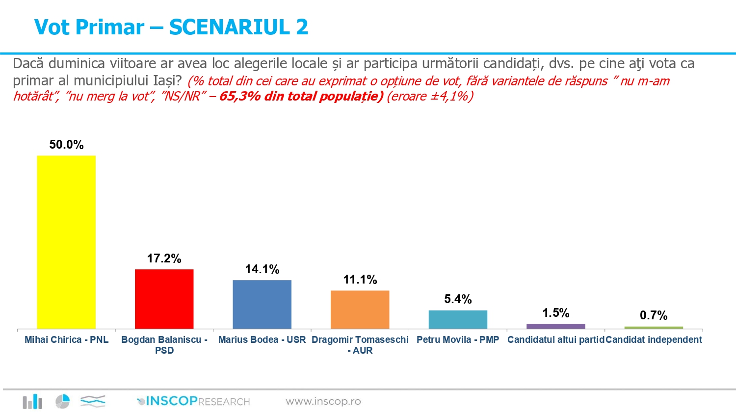 În orice scenariu aplicat de compania de sondare, dacă duminica viitoare ar avea loc alegeri, atât la nivel uninominal, cât și la nivel de partid politic, PNL Iași ar câștiga toate formele de scrutin, locale și parlamentare.