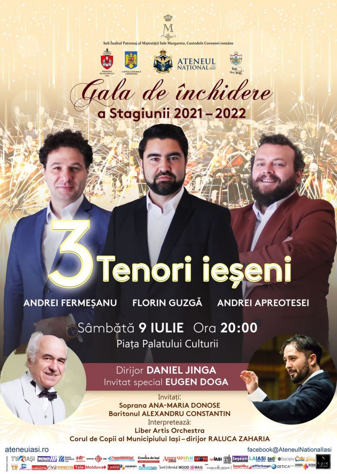 După un model internațional bine-cunoscut, concertul 3 tenori ieșeni aduce în fața publicului trei artiști lirici îndrăgiți ai scenei ieșene: Andrei Fermeșanu, Florin Guzgă și Andrei Apreotesei. În cadrul evenimentului vă veți bucura și de prezența extraordinară a maestrului Eugen Doga, alături de invitații speciali soprana Ana-Maria Donose și baritonul Alexandru Constantin.