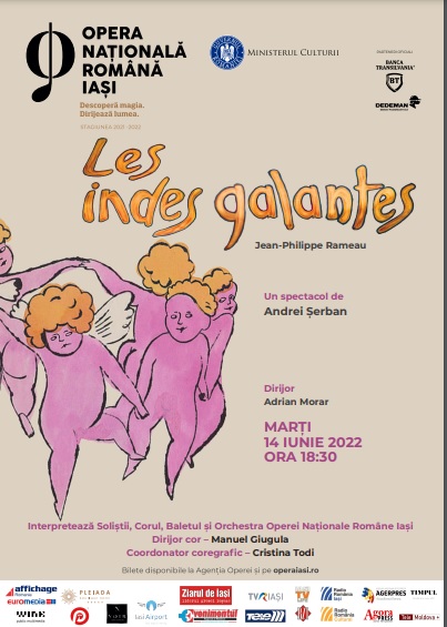 Unul dintre cele mai de succes spectacole din repertoriul Operei Naționale Române din Iași, „Les indes galantes”, în regia lui Andrei Șerban, revine pe scena teatrului liric ieșean. Marți, 14 iunie, cu începere de la ora 18:30, publicul va avea posibilitatea să vadă pentru prima dată în această stagiune creația lui Jean-Philippe Rameau. „Les indes galantes”, care a avut premiera la Opera Iași în urmă cu zece ani, a mai fost montat de Andrei Șerban și la Opera Garnier din Paris, în 2003.