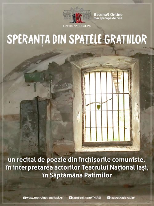 În Săptămâna Patimilor, începând cu Lunea Mare și terminând cu Vinerea Mare, actorii Teatrului Național Iași oferă celor de acasă o emoționantă întâlnire cu poezia închisorilor comuniste, în recitalul „Speranța din spatele gratiilor”.