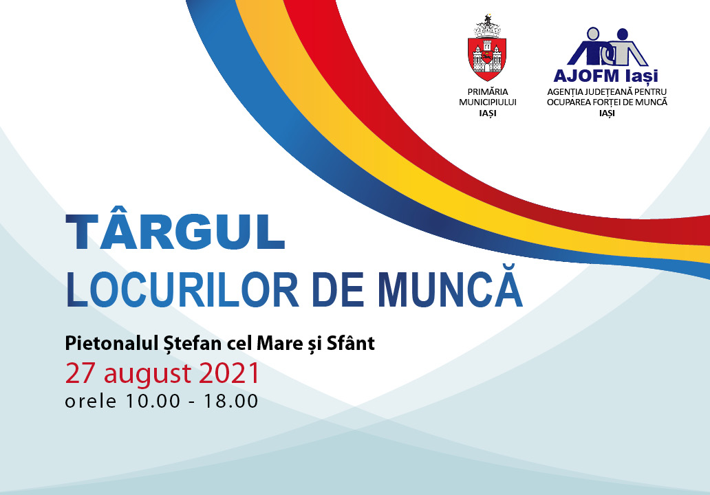 Primăria Municipiului Iași și Agenția Județeană pentru Ocuparea Forței de Muncă (AJOFM) vor organiza un târg al locurilor de muncă dedicat românilor din diaspora. Evenimentul va avea loc vineri, 27 august, în intervalul orar 10.00 – 18.00, pe pietonalul Ștefan cel Mare și Sfânt, fiind inclus în cadrul programului „Sărbătoarea Diasporei – Iașul este acasă!” – ediția 2021.