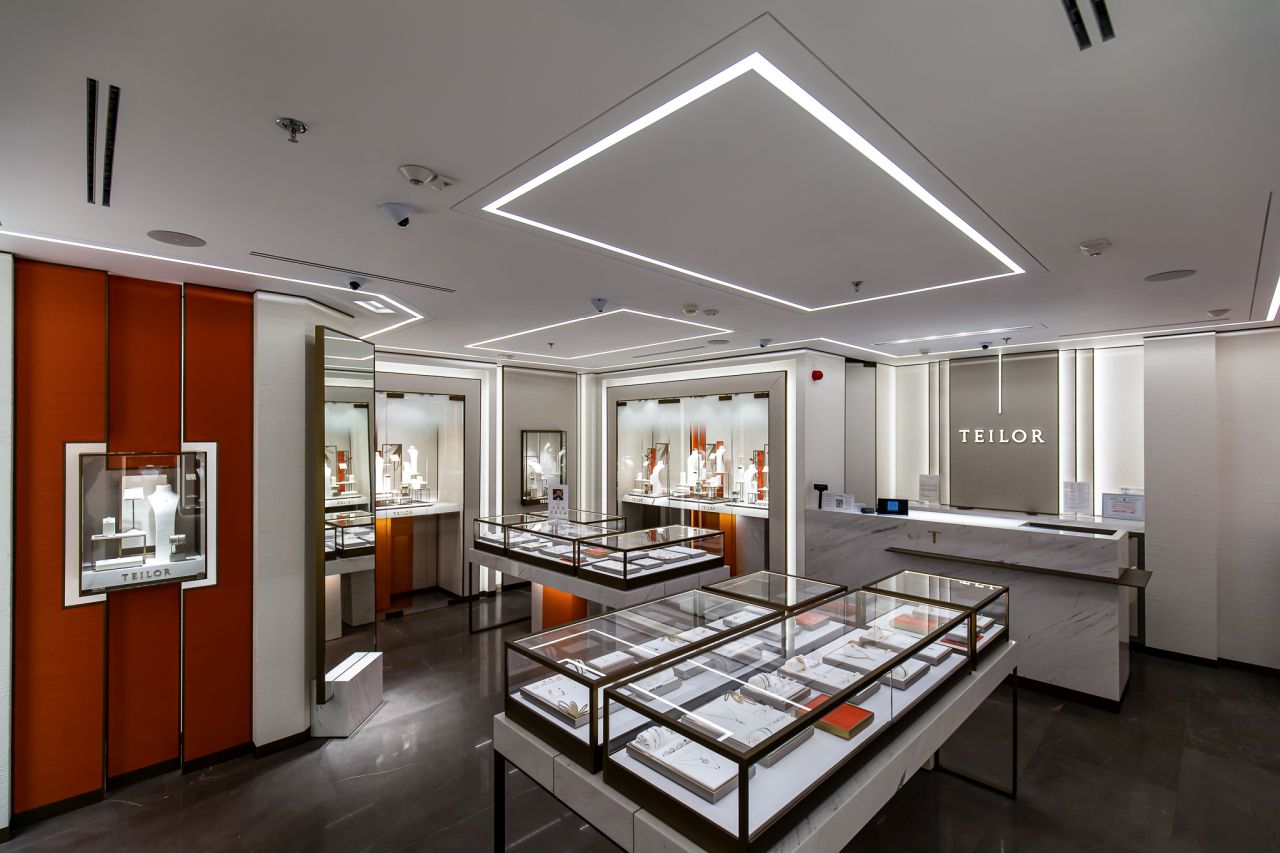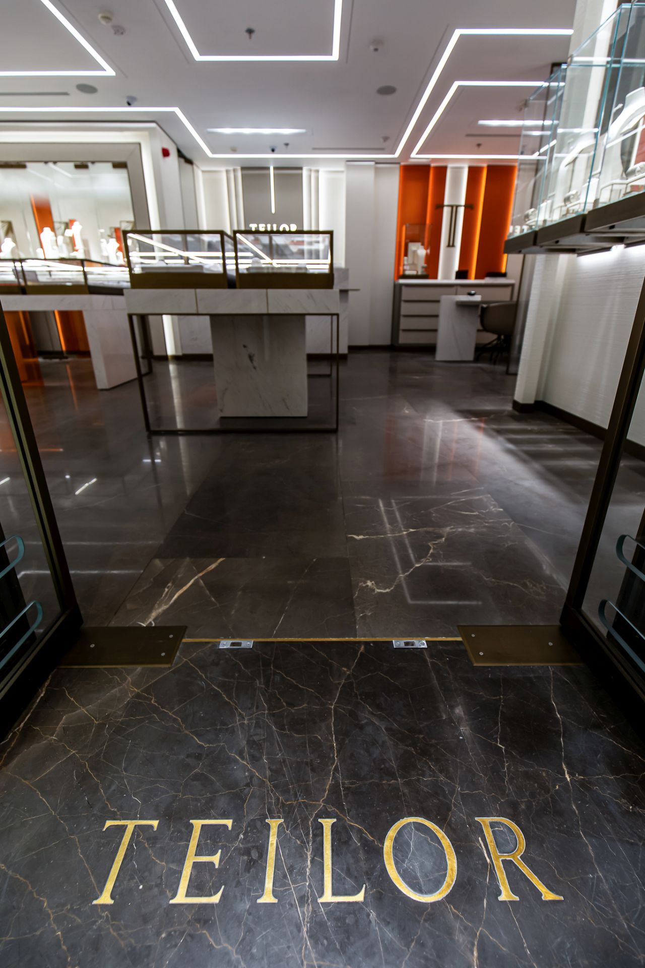 Amenajarea fiecărui magazin TEILOR este realizată în conformitate cu direcțiile arhitecturale stabilite alături de echipa de arhitecți și designeri ai brandului, fiind folosite materiale de înaltă calitate și texturi fine. Unitățile de expunere au fost realizate pentru a oferi o prezentare cu totul remarcabilă a produselor, iar accentele de culoare, precum alama satinată și portocaliul arămiu, sunt încorporate cu măiestrie în întregul design. Acesta este completat cu pardoseala de marmură, care unifică spațiul, și cu zone arhitecturale și funcționale pe toate elementele de display și pe picioarele totemurilor.