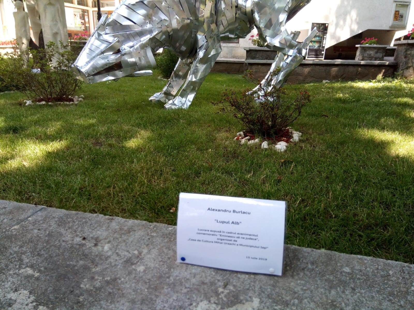 Dintre lucrările expuse, s-a remarcat cea a tânărului artist Alexandru Burlacu, absolvent al secţiei de sculptură a Facultăţii de Arte Vizuale şi Design Iaşi din cadrul Universității Naționale de Arte „George Enescu” Iași, fiind realizată în cadrul Festivalului Internaţional al Educaţiei – „Piaţa Unirii, Piaţa Artelor”. Intitulată „Lupul Alb”, lucrarea este expusă în Parcul Copou, în prezent amplasată temporar în faţa Casei de Cultură „Mihai Ursachi” a Municipiului Iaşi, prin cheltuielile proprii ale Uniunii Artiştilor Plastici – filiala Iaşi (400 de lei costuri materiale, structura de lemn).