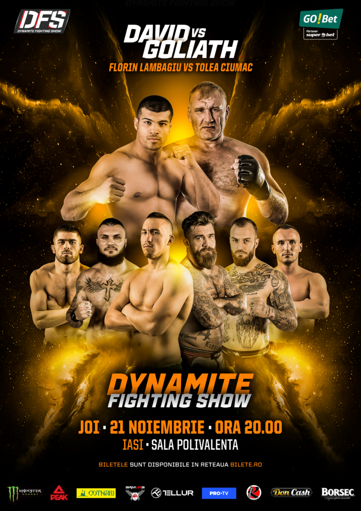 Pentru prima oară, de la lansarea proiectului, Dynamite Fighting Show va organiza o gală în municipiul Iași, la Sala Polivalentă, pe 21 noiembrie. Main event va fi duelul David vs Goliat, dintre Florin “Rambo” Lambagiu și colosul Tolea Ciumac.