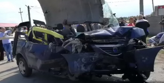 Taximetristul a pierdut controlul volanului, cel mai probabil din cauza vitezei, iar maşina s-a izbit de un stâlp din beton care susţinea panoul de intrare în localitate. Şoferul şi cei doi bărbaţi au murit pe loc.