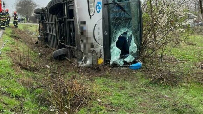 Un autocar s-a răsturnat miercuri dimineață în afara șoselei, pe raza unei localități din județul Ialomița. Mai multe persoane au suferit atacuri de panică. Patru pasageri din mijlocul de transport au ajuns la spital.