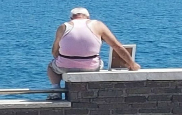 Fotografia a fost surprinsă în Gaeta, pe coasta mării din Lazio, provincia Latina (Italia) şi imortalizează un bărbat ce şedea uitându-se la mare, alături de o fotografie a soţiei sale, probabil decedată. Un gest al unui romantism de altădată, mărturie a unei iubiri pure şi mai puternice chiar decât moartea însăşi. A „fixat” această imagine pe peliculă (dacă încă se mai poate spune aşa) Giorgio Moffa, primul care a publicat-o pe Facebook, însoţită de un comentariu care ne ajută să înţelegem scena mai bine: