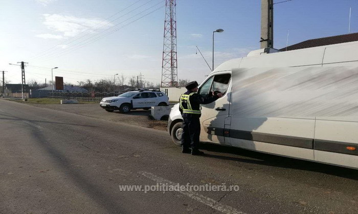 Poliţiştii de frontieră din cadrul aceluiaşi sector, pe timpul efectuării unor misiuni specifice în zona de competenţă, l-au depistat în trafic, pe raza localităţii de frontieră Hermeziu, pe vrânceanul V.M., în vârstă de 36 de ani, care conducea o autoutilitară marca Fiat Ducato, înmatriculată în România.