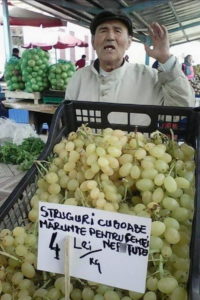 Întâmplare ilară în Iași! Un bătrânel care vindea struguri la piață a pus un afiș care i-a lăsat mască pe cumpărători. În dreptul prețului, bărbatul a scris și un mesaj dedicat femeilor.