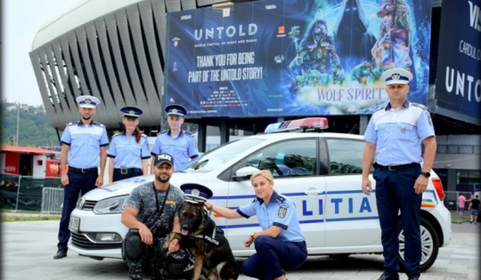 În aceste zile, la Cluj Napoca are loc festivalul Untold. Pentru buna desfăşurare a evenimentului, la festival participă şi un câine poliţist ieşean alături de conductorul său.