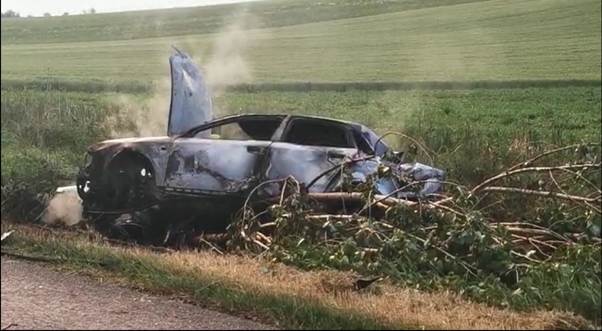 Un autoturism s-ar fi răsturnat în afara părții carosabile, ulterior apărând un incendiu.