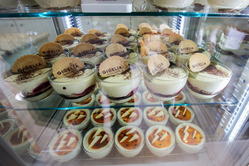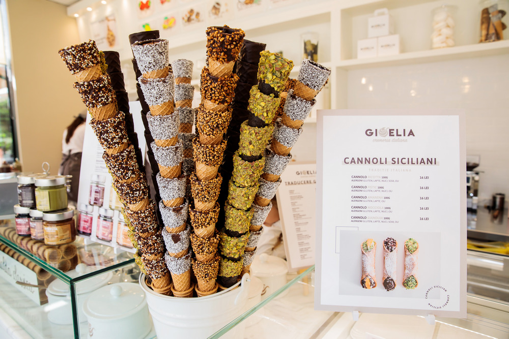 Cei care vor o aroma clasică pot opta pentru ciocotella, cremă catalană, arahide sărate, fistic și migdale, panna cota și caramel, vanilie sau alune. La Gioelia Cremeria mai poți încerca și un desert specific sicilian, cannoli, torturi pe bază de înghețată, dar și Bicchierini – un pahar atractiv cu înghețată semifreddo. În același timp, iubitorii de înghețată pot să își aleagă tipul de cornet preferat: simplu, cu bomboane, fistic sau cocos.