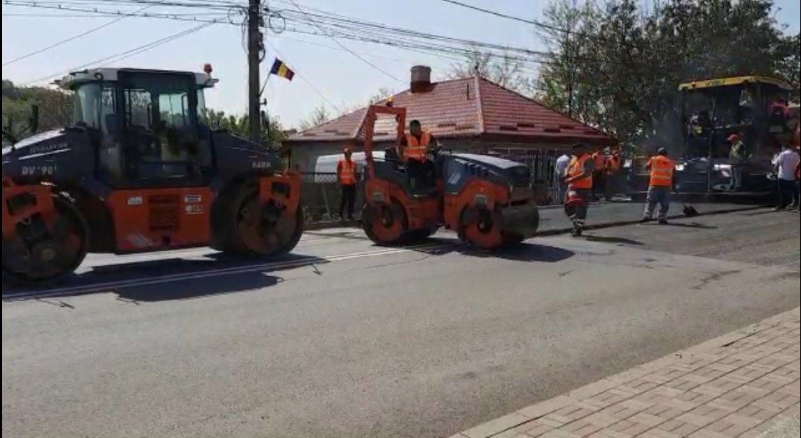 A început așternerea covorului asfaltic pe DN 28, Strunga – Târgu Frumos, județul Iași.