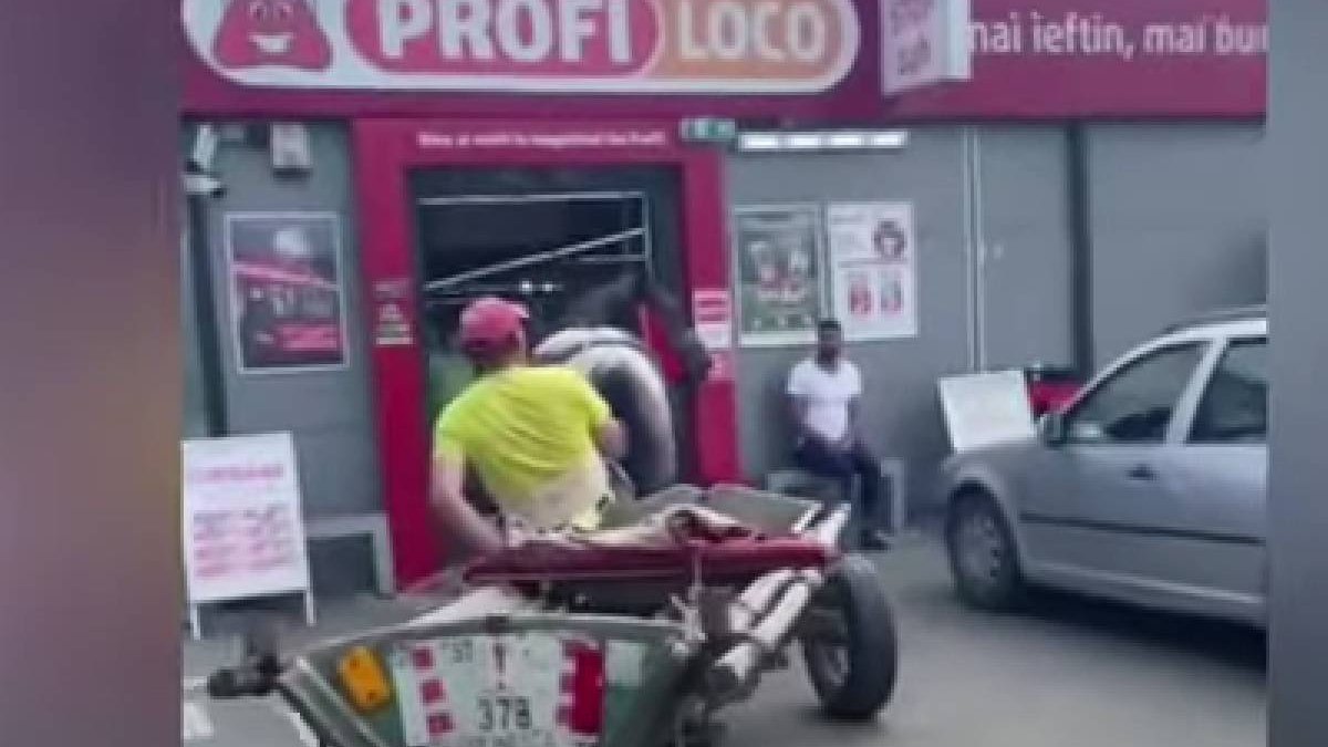 Un bărbat supărat pe polițiști a intrat cu căruța în magazinul Profi din orașul Dolhasca, județul Suceava. Incidentul s-a produs miercuri, 27 iulie.