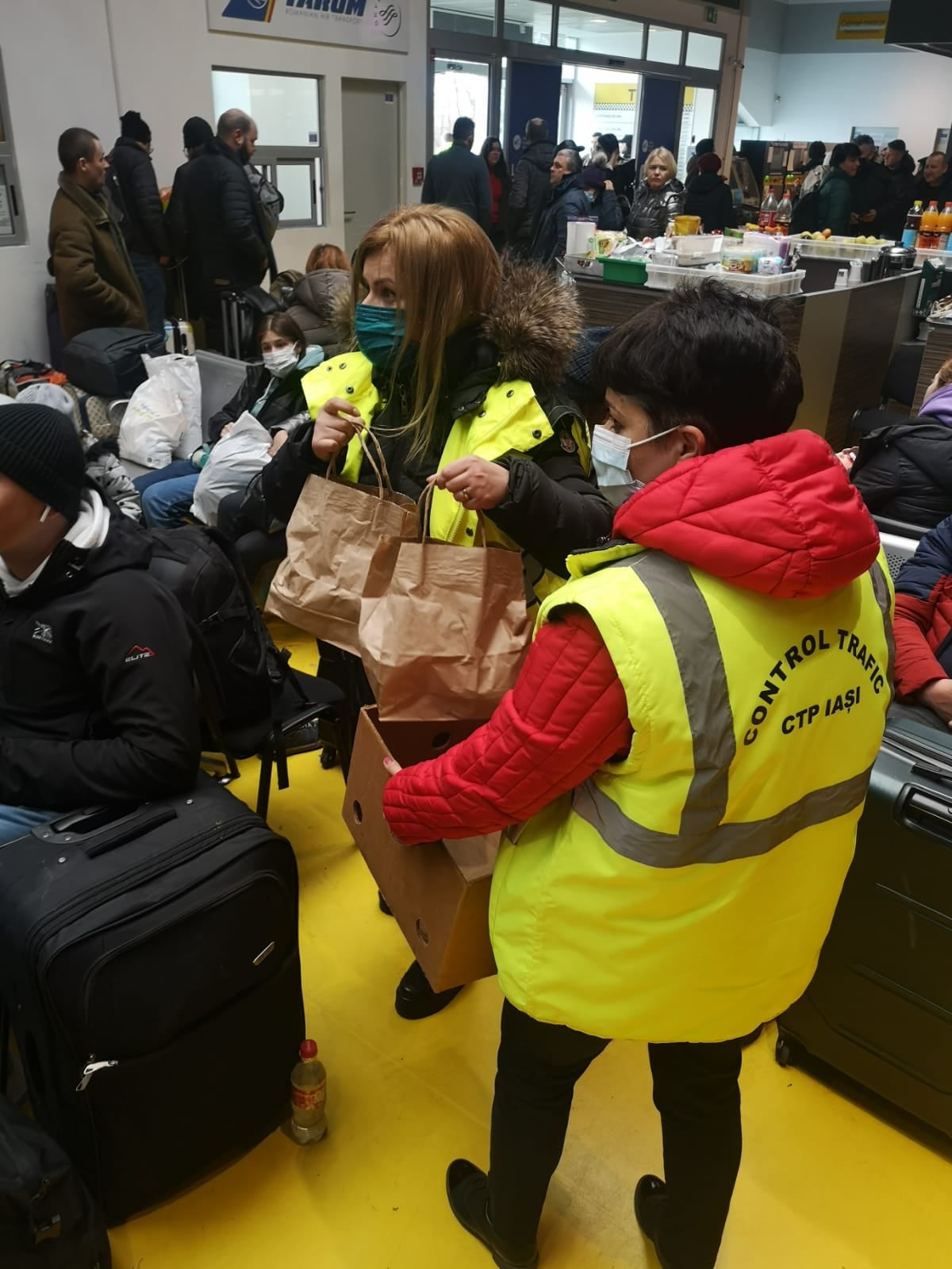 Zeci de porții de mâncare caldă și gustoasă au fost oferite și astăzi, 9 martie 2022, refugiaților din Ucraina aflați în tranzit în Aeroportul Internațional Iași – IASI Airport.