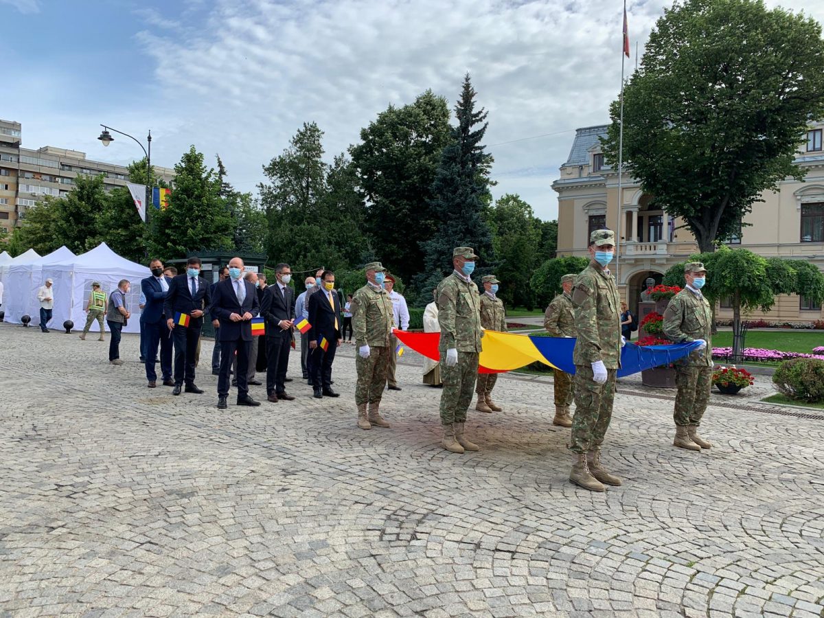 Drapelul a fost sărutat pe rând de oficialii prezenți la eveniment.