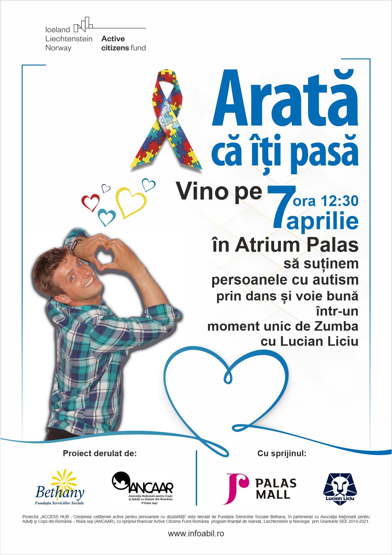 Campania „Arată că îți pasă!” este parte a proiectului „ACCESS HUB – Creșterea cetățeniei active pentru persoanele cu dizabilități”, ce are scopul de a veni în sprijinul persoanelor cu dizabilități de la nivelul județului – copii, tineri și reprezentanți legali ai acestora. Proiectul este derulat de Fundația Serviciilor Sociale Bethany, în parteneriat cu Asociația Națională pentru Copii și Adulți cu Autism din România – filiala Iași (ANCAAR), cu sprijinul financiar Active Citizens Fund România, program finanțat de Islanda, Liechtenstein și Norvegia prin Granturile SEE 2014-2021. Proiectul beneficiază de o finanțare nerambursabilă în valoare de 188.600 Euro și este derulat în perioada aprilie 2021 – septembrie 2022.